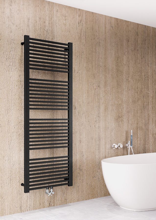 De Instamat RIM Elektrisch is een elektrische badkamerradiator die een eigentijds design met robuuste uitstraling heeft. Met zijn strakke lijnen en hoekige vormen onderscheidt deze radiator zich in elke moderne badkamer. De stoere uitstraling wordt versterkt door de verticale rechthoekige collectorbuizen en de vierkante horizontale buizen, die samen zorgen voor een mooi effect. Inclusief een effectieve roestwerende behandeling met een duurzame poeder-epoxylaag.